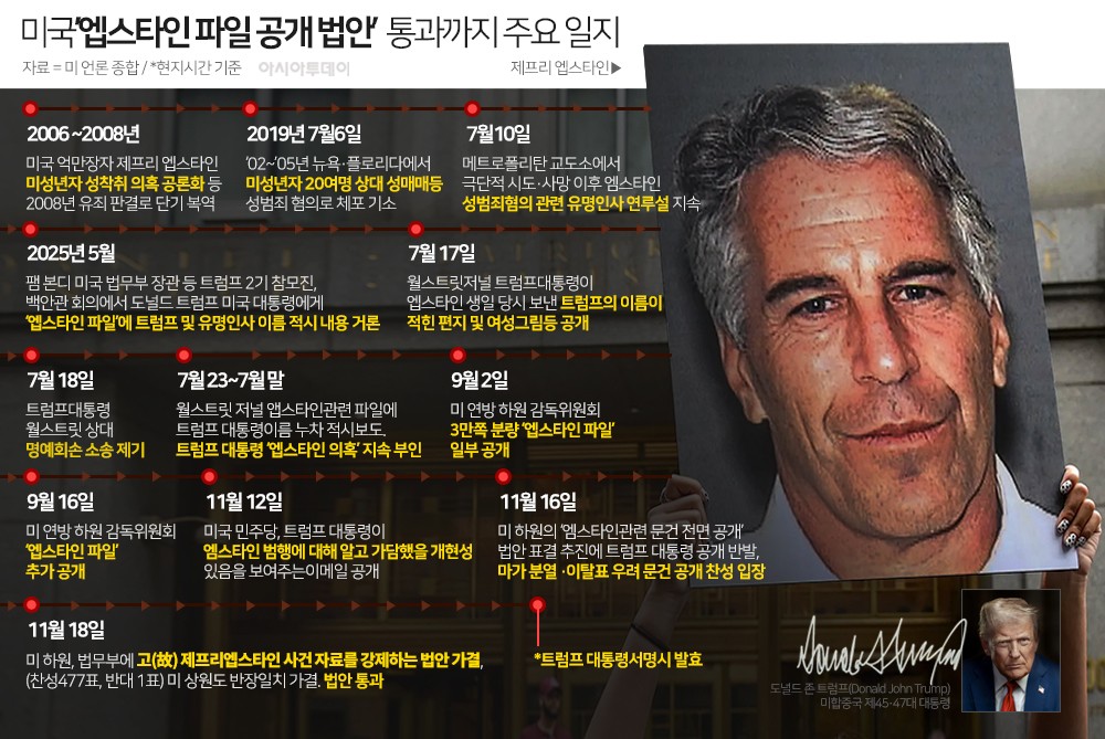 "성범죄자 '엡스타인 파일' 공개" 美의회 통과...트럼프 곤혹