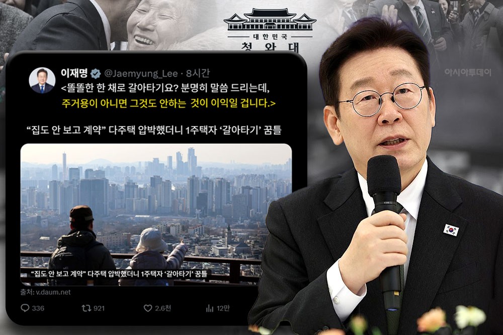 이재명 대통령은 5일 이른바 '똘똘한 한 채' 갈아타기와 관련해 "분명히 말하는데 주거용이 아니면 그것도 하지 않는 것이 이익일 것"이라며 부동산 시장을 향해 경고성 메시지를 내놨다. 대통령이 직접 SNS를 통해 다주택자와 시장을 겨냥한 메시지를 연이어 발신하는 것은 다주택자 양도소득세 중과 유예 종료를 앞두고 '버티기'나 '갈아타기' 기대를 차단하고, 투기 수요를 선제적으로 억제하겠다는 의도로 해석된다. 이 대통령은 이날 오전 엑스(X·옛 트위터)에 정부의 다주택자 규제 강화 이후 상급지로 이동하려는 '똘똘한 한 채' 수요가 이어지고 있다는 취지의 언론 보도를 공유하며 이같이 밝혔다. 다주택자 규제를 우회하려는 움직임에 대해 직접 선을 그은 것으로 풀이된다. 해당 기사는 다주택자 양도소득세 중과 유예 종료로 가격을 내린 급매물이 시장에 나오고 있지만 보다 더 상급지로 옮겨가려는 '똘똘한 한 채' 수요도 급매물을 잡기 위해 발 빠르게 움직이면서 서울 부동산 시장이 '갈아타기' 장세..