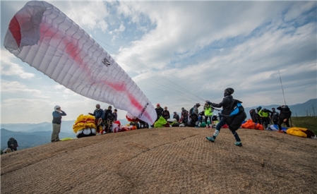 지난 주말 패러글라이딩 동호인들의 축제인 대한체육회장기 전국패러글라이딩대회가 동해안에서 펼쳐졌다. 25~26일 양일간 펼쳐진 대회장은 강원 강릉시 옥계면 망운산에 있는 해발 323m의 밥봉. 동해안에서 패러글라이딩 성지로 꼽히는 이곳에서 패러글라이딩의 한 종목인 정밀착륙을 겨루는 전국 시도대회가 열렸다. 망운산 밥봉 인근은 지난 2019년 대형 산불이 동해안을 덮쳤을 때 피해가 가장 심각했던 지역 중 하나다. 그래서인지 산 외곽은 아직 민둥산에 가까웠다. 정밀착륙 종목은 동전 크기(2cm 안팎)의 착륙지점을 설정해 가장 가까..