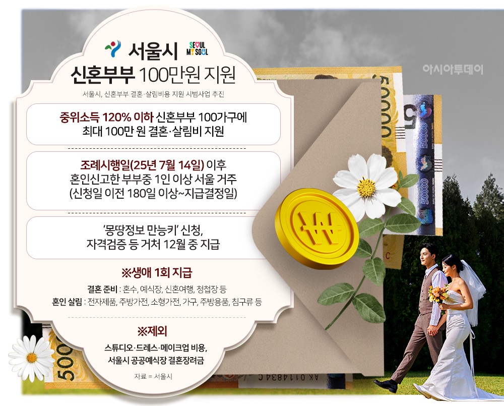 서울시가 신혼부부의 경제적 부담을 덜기 위해 최대 100만원의 결혼·살림 비용을 지원한다.