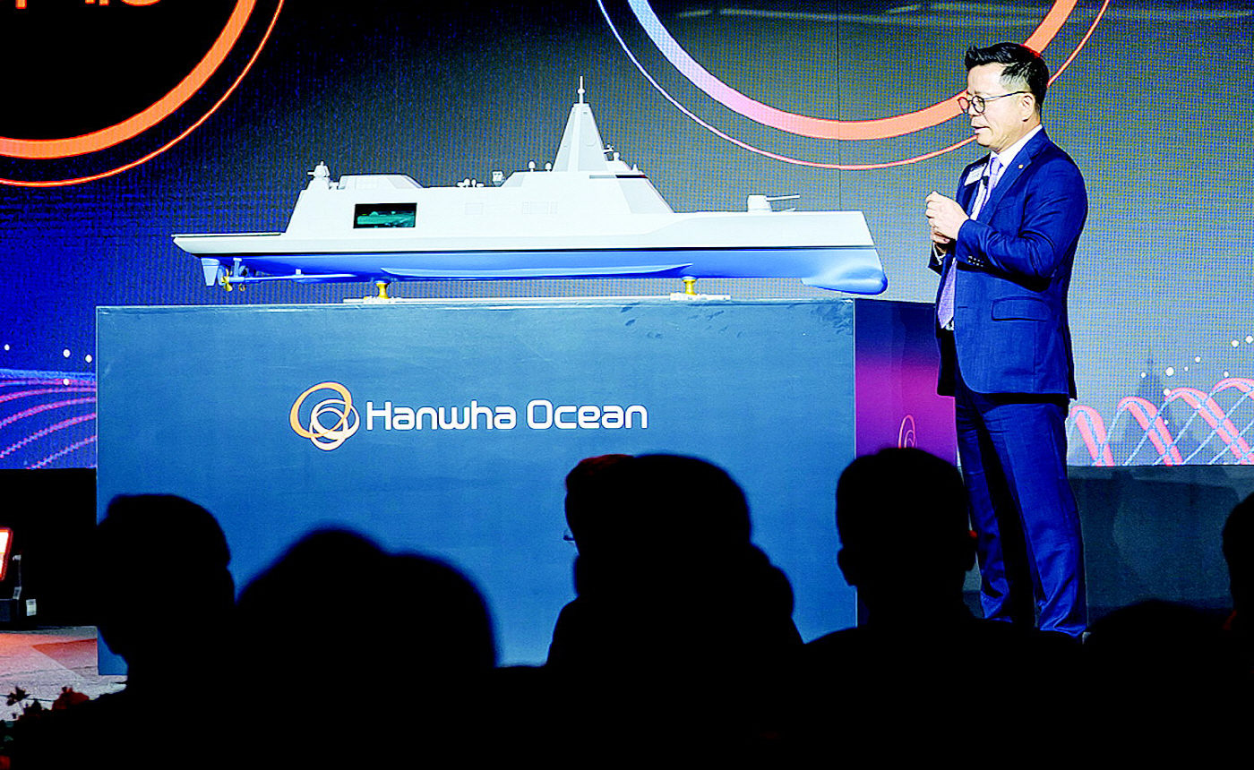 한편 한화오션은 격화하는 무역갈등 속 차세대 전략수상함 구상을 제시했다. 전날 서울 더플라자호텔에서 스마트 함정 기술과 전망 등을 발표하고 교류하는 '제3회 차세대 스마트 함정 기술 연구회'를 진행했다고 밝혔다. 어성철 특수선사업부장(사장)이 차세대 전략 수상함을 공개하며 "글로벌 안보환경의 변화와 우리나라를 둘러싼 해양패권 경쟁이 높아지고 있어 이를 대비한 대안으로 새로운 플랫폼이 필요하다"며 개발 배경을 설명했다.