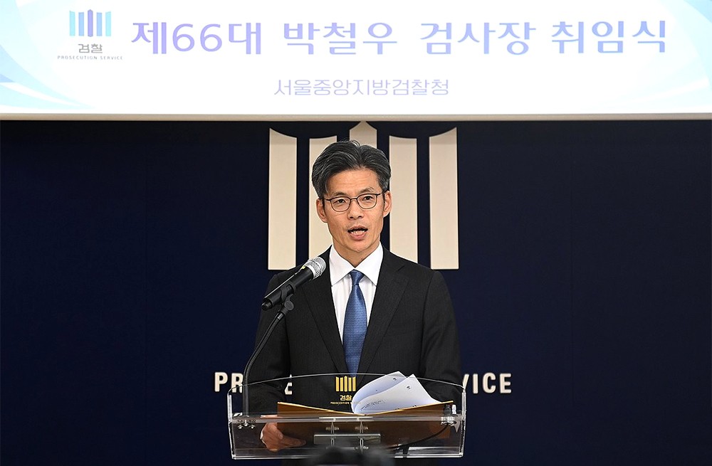 박철우 신임 서울 중앙지검장(사법연수원 30기)은 21일 취임식에서 "경찰 수사에 대한 효율적인 사법 통제와 보완수사야 말로 국민들로부터 검찰의 존재의의를 새롭게 인정받을 수 있는 중요 분야"라고 말했다.