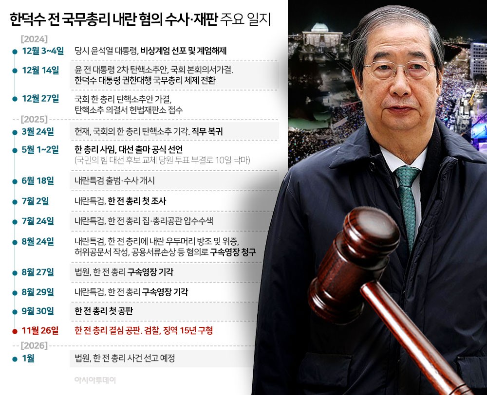 | 한덕수 전 국무총리 내란 혐의 수사·재판 주요 일지 / 그래픽 = 박종규 기자 |