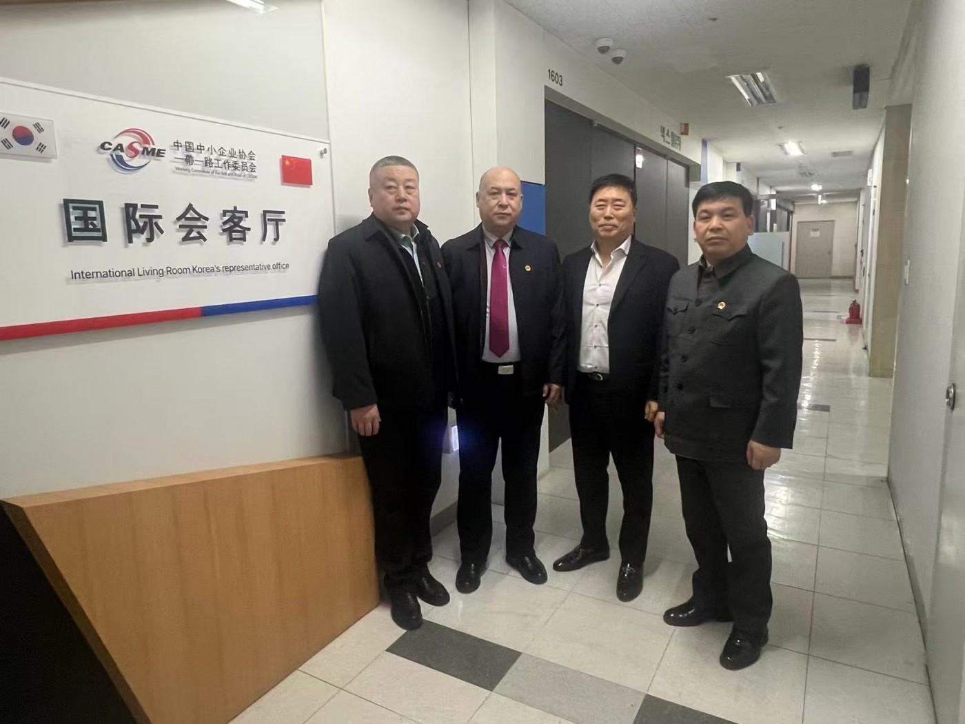 중국 일대일로 일행이 한국 일대일로 대표처 방문. 왼쪽부터 중국 과학기술부 부부장 황학봉, 중국 일대일로 뤼홍송 비서장, 한국 일대일로 수석대표 최기재, 중국 일대일로 국제부장 이홍철. / 사진=한국 일대일로 대표처